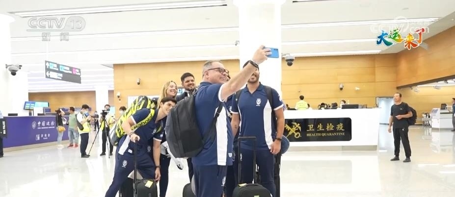 當(dāng)天抵達(dá)的巴西代表團(tuán)在機(jī)場(chǎng)完成海關(guān)衛(wèi)生檢疫及通關(guān)手續(xù)后,代表團(tuán)成員表示,很高興來(lái)到成都,希望打好比賽的同時(shí)也希望好好感受成都的美好生活。