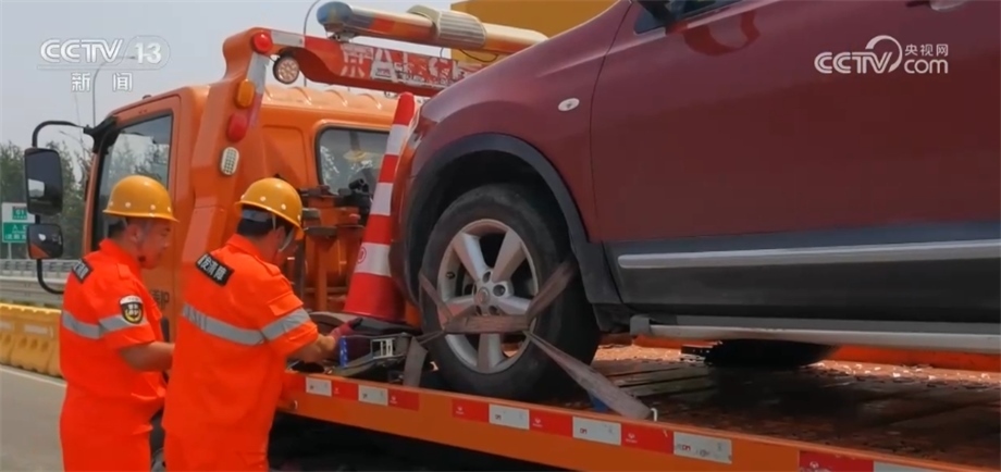 車(chē)主:(清障救援人員)也沒(méi)有防曬,這么高的氣溫,又是大中午,這天挺熱的,太不容易了,謝謝他們。