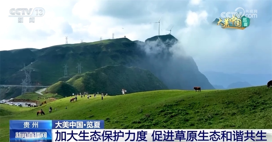 跟隨鏡頭,我們來到貴州六盤水盤州市的烏蒙大草原。眼下,正值盛夏的烏蒙大草原水草豐茂、碧綠如茵、牛羊成群,從空中俯瞰,縹緲的云霧將草原裝扮得十分夢幻。烏蒙大草原最高海拔2857米。因為地處高海拔地區(qū),這里的氣候適宜,吸引了許多游客來到這里避暑旅游。近年來,當?shù)丶哟髮Υ迕窈陀慰偷男麄饕龑?dǎo)力度,并采取措施限制過度放牧,嚴厲打擊采挖野生高原矮杜鵑和駕車碾壓草地等行為,保護草原生態(tài)平衡,維護生物多樣性,讓烏蒙大草原生態(tài)持續(xù)向好,實現(xiàn)人與自然和諧共生。