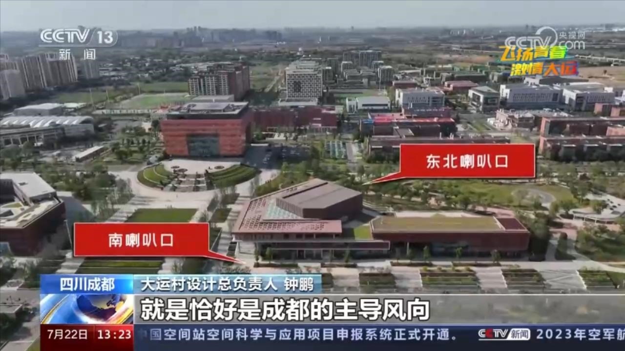 設計團隊結合地形,設計了“兩頭大、中間小”的喇叭口,一邊朝東北,另一邊朝南,順著成都的主導風向,把空氣接收進來,在中間部分的收束區(qū)域,氣流被加速,就形成了“涼風陣陣”。在物理學上,這叫文丘里效應。