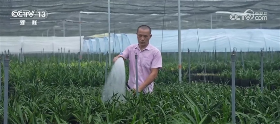 總臺(tái)央視記者 陳燁煒:今天室外的溫度在38℃左右,但是在蘭花的種植棚里是28℃左右,為什么室外和室內(nèi)的溫度能相差10℃?原因就在于在這個(gè)棚里面被安裝上了一系列的智能設(shè)備,一旦里面的溫度超過(guò)了設(shè)定值,這里的水簾、噴霧設(shè)備就會(huì)自動(dòng)開(kāi)啟,來(lái)進(jìn)行一系列的調(diào)節(jié),以此來(lái)達(dá)到這些蘭花最適宜生長(zhǎng)的一個(gè)環(huán)境。