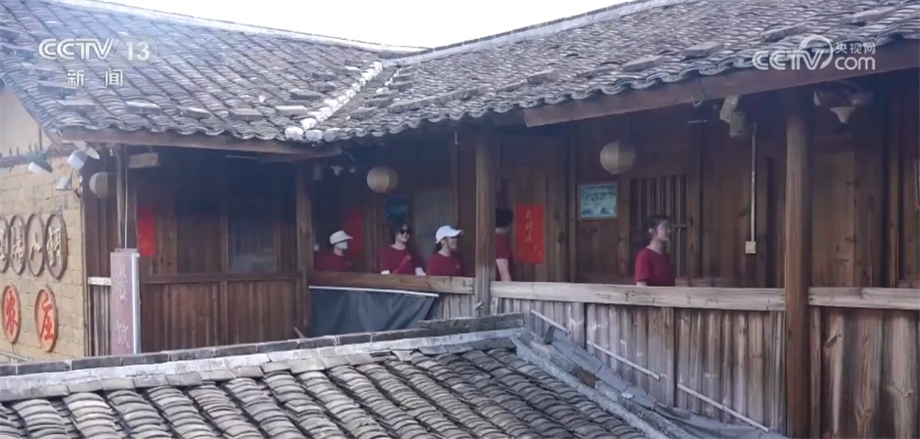 總臺(tái)央視記者 陳燁煒:我身后的這棟樓已經(jīng)有100多年的歷史,鵝卵石鋪成的小院、青磚砌成的外墻以及木質(zhì)結(jié)構(gòu)的房屋,處處在向我們傳遞著古老的文化氣息,多年前這里曾經(jīng)是當(dāng)?shù)鼐用窬幼〉姆课?,而近幾年?jīng)過(guò)改造后,已經(jīng)成了很多外地游客慕名前來(lái)的網(wǎng)紅打卡地。