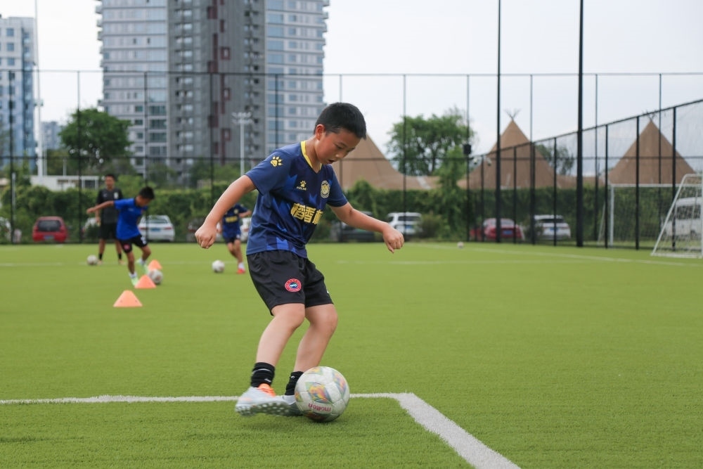7月21日,在四川天府新區(qū)CDT運(yùn)動公園內(nèi),小朋友參加暑期少兒足球訓(xùn)練。新華社記者 楊進(jìn) 攝