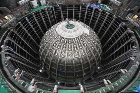 圖為江門中微子地下實(shí)驗(yàn)室中微子探測(cè)裝置。(中國(guó)科學(xué)院高能物理研究所供圖)