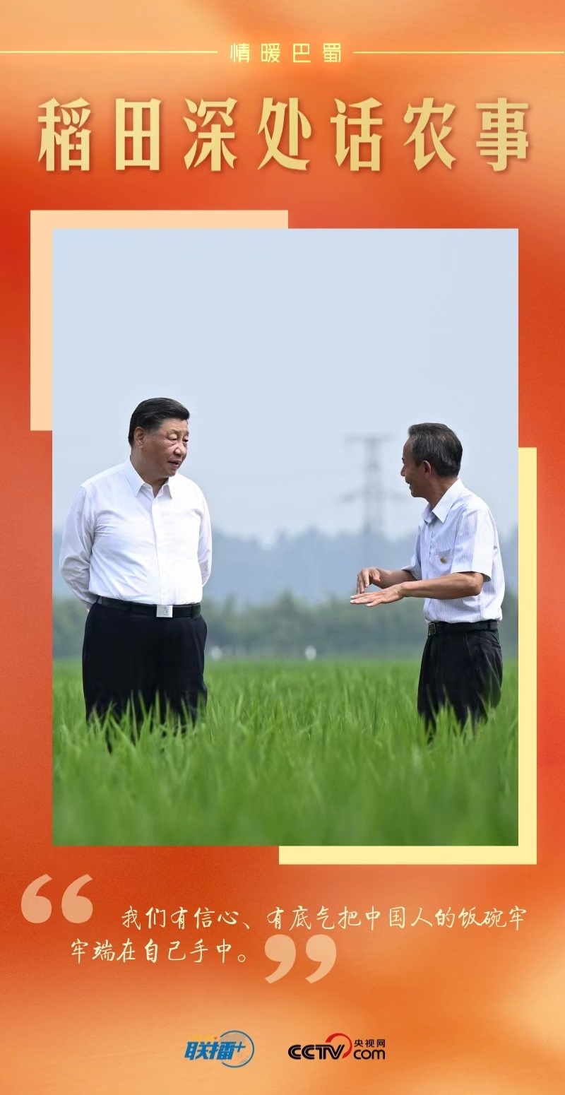 遠(yuǎn)眺廣袤田野,總書(shū)記思慮深遠(yuǎn):“民以食為天。推進(jìn)農(nóng)業(yè)現(xiàn)代化,既要靠我們中國(guó)的農(nóng)業(yè)專家,也要靠我們中國(guó)的農(nóng)民,我們有信心、有底氣實(shí)現(xiàn)糧食安全的目標(biāo)。四川要把農(nóng)業(yè)搞好,把糧食生產(chǎn)抓好?!?/p>