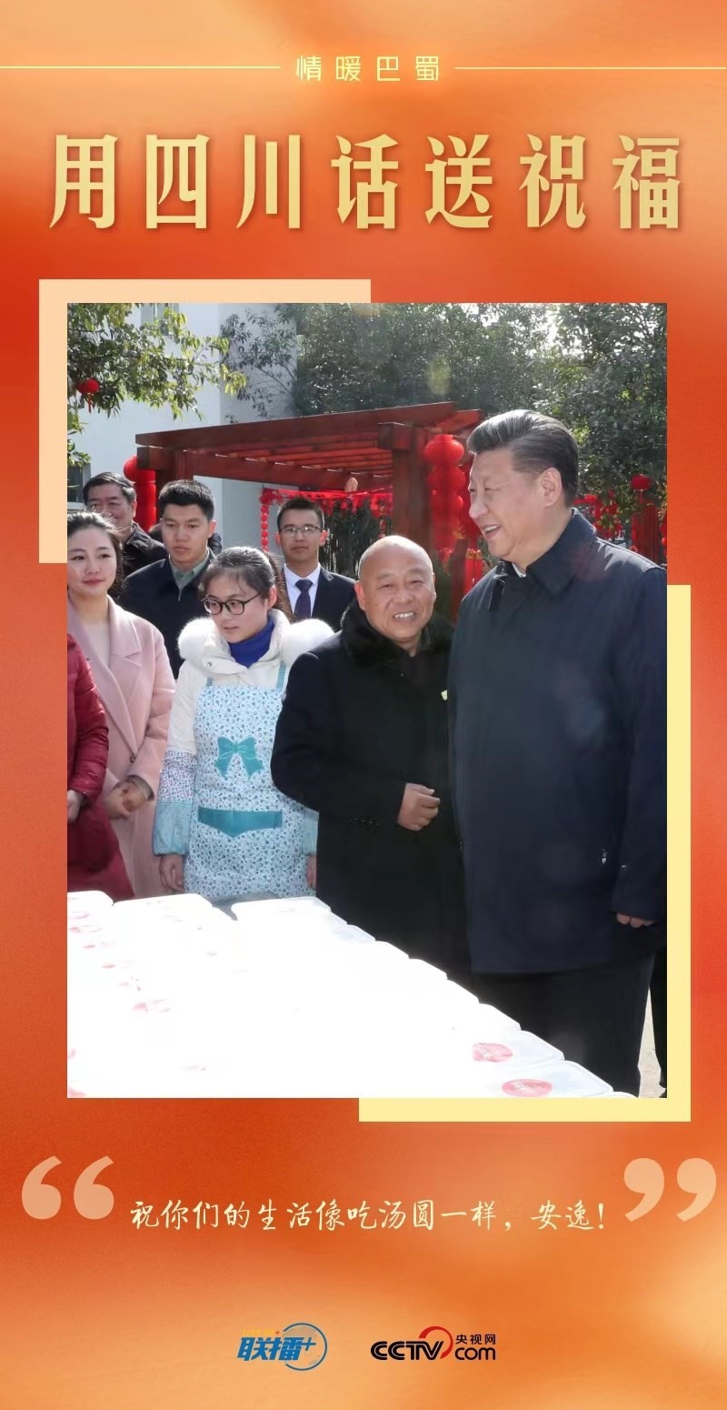 看到有村民在路邊包湯圓,總書(shū)記饒有興致地過(guò)去觀看,豎起拇指,用四川話對(duì)大家說(shuō):“祝你們的生活像吃湯圓一樣,安逸!”