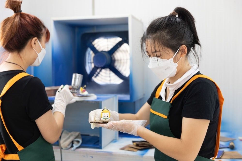7月27日,工作人員在西疇湯谷文化創(chuàng)意產業(yè)園為產品噴漆。新華社記者 呂帥 攝