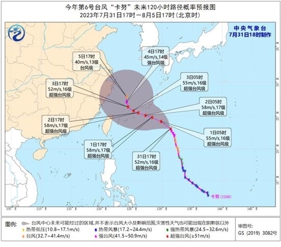 8月1日開(kāi)始,受副熱帶高壓變?nèi)酢⑿螒B(tài)改變的影響,“卡努”的引導(dǎo)氣流將變得不太清晰,其移速也將減緩。最新預(yù)報(bào)顯示,“卡努”將以每小時(shí)15-20公里的速度向西北方向移動(dòng),強(qiáng)度還將有所增強(qiáng),8月2日夜間移入東海,逐漸轉(zhuǎn)向偏北方向移動(dòng),移速明顯減慢。