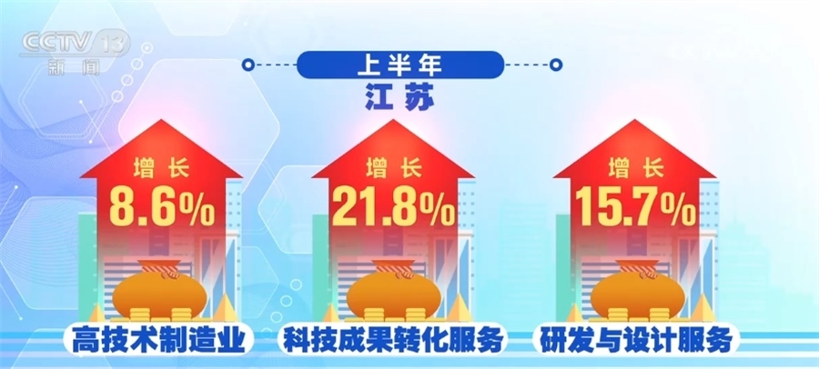 江蘇、浙江、安徽把創(chuàng)新當(dāng)做制造業(yè)升級(jí)的著力點(diǎn)。上半年,江蘇高技術(shù)制造業(yè)增長(zhǎng)8.6%,科技成果轉(zhuǎn)化服務(wù)、研發(fā)與設(shè)計(jì)服務(wù)分別增長(zhǎng)21.8%和15.7%。浙江上半年,科學(xué)研究和技術(shù)服務(wù)業(yè)投資增長(zhǎng)52.2%。規(guī)模以上工業(yè)中,新產(chǎn)品產(chǎn)值率已經(jīng)達(dá)到41.4%,并在持續(xù)提高。安徽上半年裝備制造業(yè)增加值增長(zhǎng)了15.3%,汽車產(chǎn)業(yè)增長(zhǎng)42.6%,光伏產(chǎn)業(yè)增長(zhǎng)了一倍。