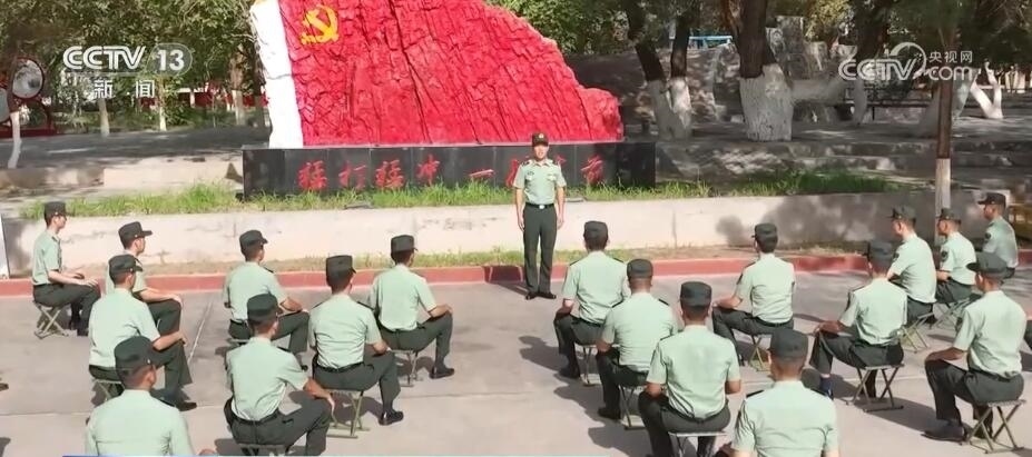 八一建軍節(jié)當(dāng)天,新疆軍區(qū)某紅軍團(tuán)組織升國(guó)旗儀式,官兵們整齊列隊(duì)向國(guó)旗行軍禮。升旗儀式結(jié)束后,部隊(duì)在營(yíng)區(qū)內(nèi)“黨旗山”下為部分官兵頒發(fā)衛(wèi)國(guó)戍邊紀(jì)念章,以此表彰他們對(duì)維護(hù)祖國(guó)繁榮作出的貢獻(xiàn)。