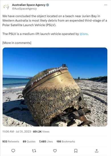 ·外媒:澳大利亞海灘不明物體被確認(rèn)為印度火箭碎片。