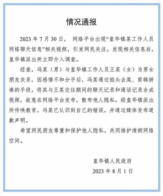 ·四川一公職人員被曝涉不雅聊天,官方通報:視頻系男子分手后剪輯合成。