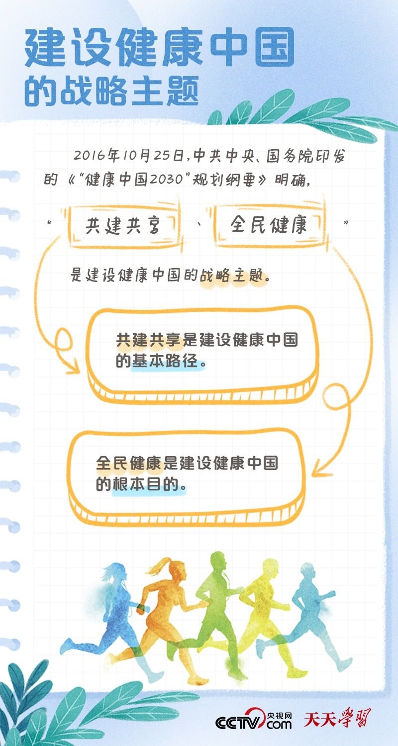 黨的二十大報(bào)告將“建成健康中國”作為到2035年我國發(fā)展的總體目標(biāo)之一,并指出,人民健康是民族昌盛和國家強(qiáng)盛的重要標(biāo)志,把保障人民健康放在優(yōu)先發(fā)展的戰(zhàn)略位置,完善人民健康促進(jìn)政策。什么是健康中國?如何全面推進(jìn)健康中國建設(shè)?央視網(wǎng)《天天學(xué)習(xí)·學(xué)習(xí)筆記》特梳理相關(guān)內(nèi)容,為您解讀總書記治國理政關(guān)鍵詞——健康中國。