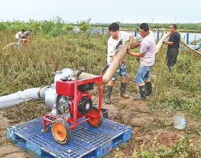 日前,河北省邢臺(tái)市南和區(qū)農(nóng)業(yè)農(nóng)村局農(nóng)技推廣員幫助受災(zāi)養(yǎng)殖戶進(jìn)行魚塘合理排澇。趙永輝攝(人民視覺)