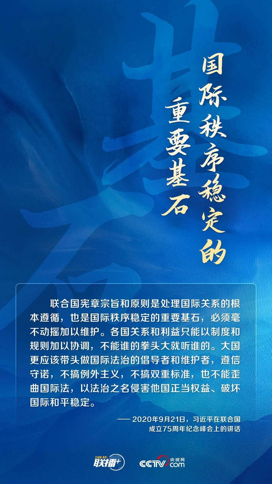 世界上只有一個體系,就是以聯(lián)合國為核心的國際體系;只有一套規(guī)則,就是以聯(lián)合國憲章為基礎(chǔ)的國際關(guān)系基本準(zhǔn)則。中國始終以實際行動踐行聯(lián)合國憲章宗旨和原則,持續(xù)為人類文明和進(jìn)步事業(yè)貢獻(xiàn)中國方案,承擔(dān)大國責(zé)任,展現(xiàn)大國擔(dān)當(dāng)。
