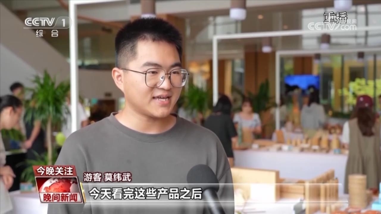 游客 莫緯武:今天看完這些產(chǎn)品之后,我就有點(diǎn)驚訝,因?yàn)橛泻芏嗌钌嫌玫降臇|西都可以用竹制品來(lái)代替。?