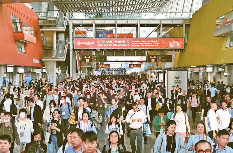 第133屆中國(guó)進(jìn)出口商品交易會(huì)(廣交會(huì))線下展于2023年4月15日至5月5日分3期舉辦,同時(shí)線上平臺(tái)全年常態(tài)化運(yùn)營(yíng)。本屆廣交會(huì)展覽面積、參展企業(yè)數(shù)量均創(chuàng)歷史新高,吸引220多個(gè)國(guó)家和地區(qū)的數(shù)十萬(wàn)采購(gòu)商報(bào)名參會(huì)。圖為4月26日拍攝的廣交會(huì)現(xiàn)場(chǎng)。 中新社記者 陳楚紅/攝