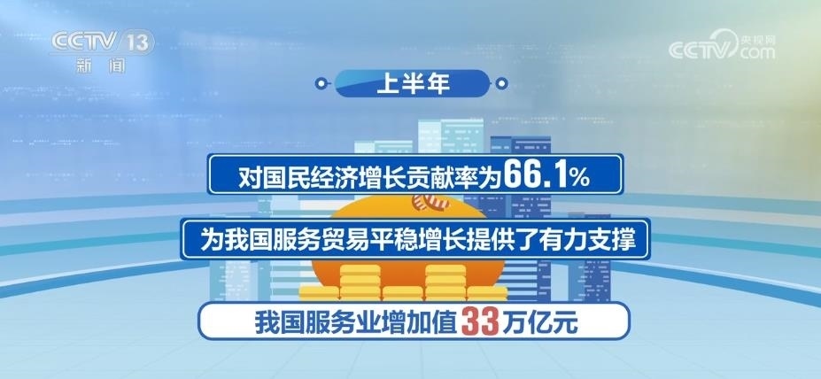 2023年以來,國(guó)民經(jīng)濟(jì)持續(xù)穩(wěn)定恢復(fù),服務(wù)業(yè)保持較快增長(zhǎng)。上半年,我國(guó)服務(wù)業(yè)增加值33萬(wàn)億元,同比增長(zhǎng)6.4%,占GDP比重為56%,高于上年同期1.6個(gè)百分點(diǎn),對(duì)國(guó)民經(jīng)濟(jì)增長(zhǎng)貢獻(xiàn)率為66.1%,為我國(guó)服務(wù)貿(mào)易平穩(wěn)增長(zhǎng)提供了有力支撐。