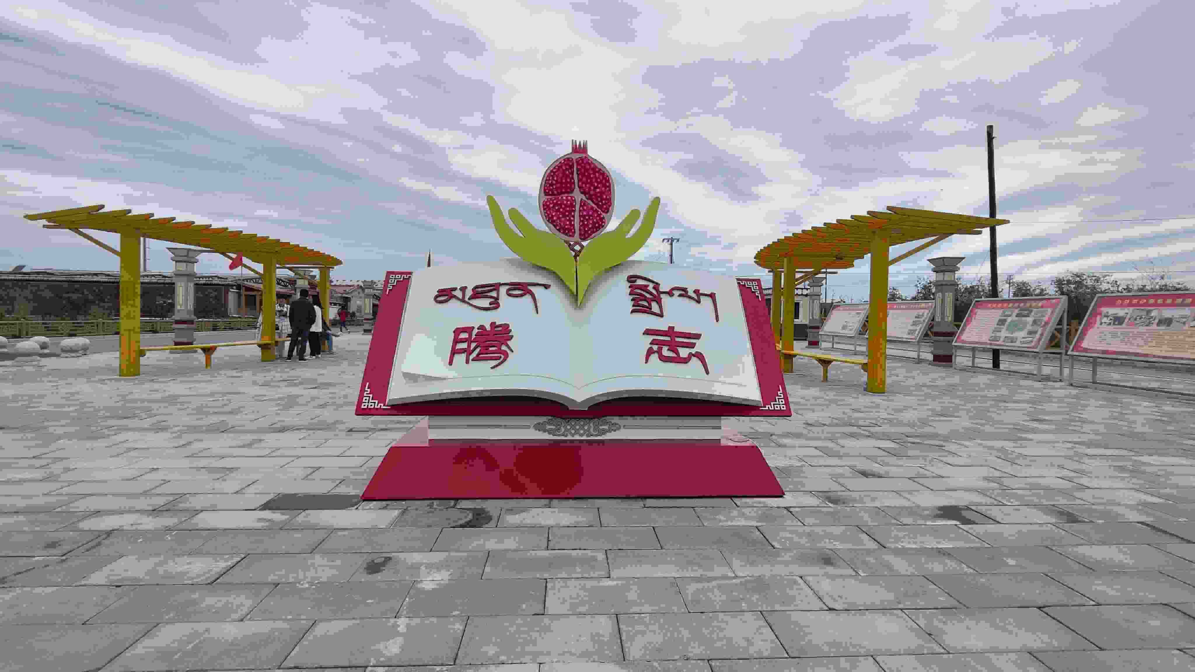 這些向好的變化離不開(kāi)每一位村民的團(tuán)結(jié)友愛(ài)、互幫互助。村口的廣場(chǎng)中間有一本打開(kāi)的書(shū),書(shū)頁(yè)上一雙手托舉著一個(gè)鮮艷的石榴,這就是果洛藏貢麻村新修建的“騰志”廣場(chǎng)?!膀v志”在藏語(yǔ)中意為“團(tuán)結(jié)”,這也寓意著各民族像石榴籽一樣緊緊抱在一起,共育團(tuán)結(jié)花,共享幸福果。