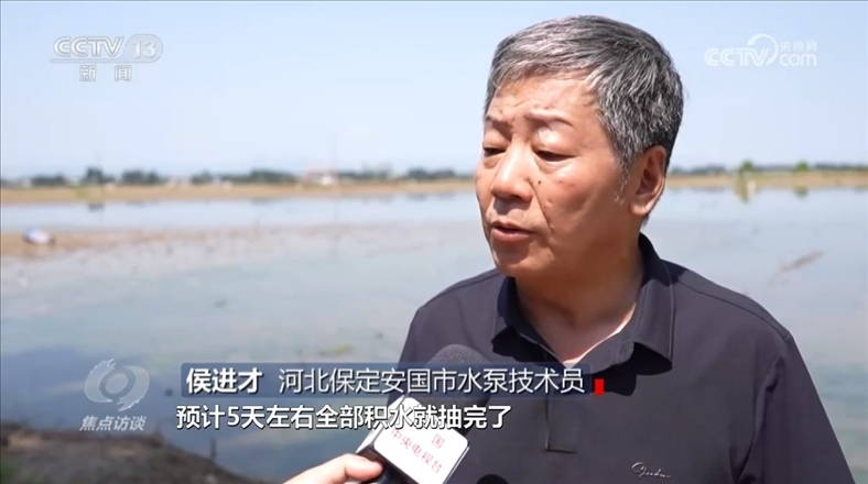 在河北涿州,多臺大型水泵正在對東城坊鎮(zhèn)的賈村、茂田莊村、徐家莊村的農(nóng)田抽排積水。
