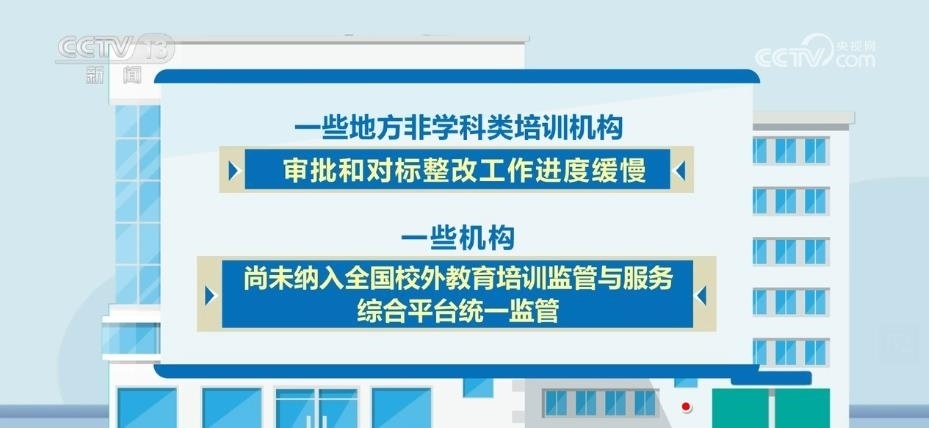 一些機(jī)構(gòu)存在超時段超限額收費(fèi)、不使用合同示范文本、預(yù)收費(fèi)資金沒有全額監(jiān)管等問題。一些地方非學(xué)科類培訓(xùn)機(jī)構(gòu)審批和對標(biāo)整改工作進(jìn)度緩慢,一些機(jī)構(gòu)尚未納入全國校外教育培訓(xùn)監(jiān)管與服務(wù)綜合平臺統(tǒng)一監(jiān)管。
