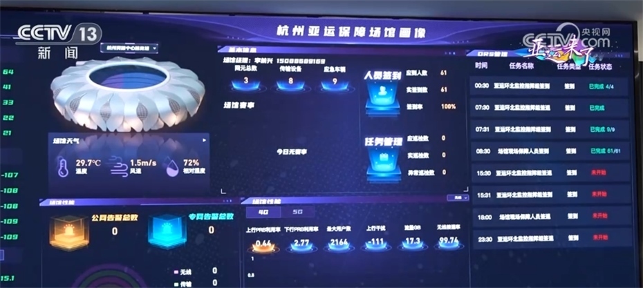 本屆亞運會秉持“綠色、智能、節(jié)儉、文明”的辦會理念,其中網(wǎng)絡(luò)通信的智能化可以說是貫穿在每個角落。在杭州亞運會通信保障指揮中心里,這里能實現(xiàn)亞運網(wǎng)絡(luò)態(tài)勢、城市運營、場館態(tài)勢等多種場景的精確感知,為亞運會網(wǎng)絡(luò)保障提供強有力的數(shù)智化支撐。