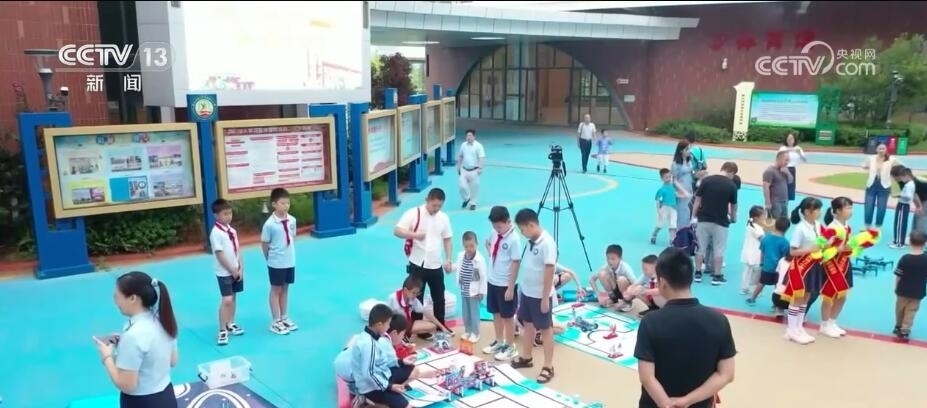 在江西贛南師范大學(xué)附屬蓉江小學(xué),形態(tài)各異的機(jī)器人分布在校園里,孩子們既可以聽老師講解機(jī)器人知識(shí),也可以與機(jī)器人互動(dòng)體驗(yàn)。此外,學(xué)校還準(zhǔn)備了3D打印機(jī)、VR眼鏡體驗(yàn)、激光雕刻等多個(gè)科學(xué)體驗(yàn)展示區(qū),讓孩子們近距離感受科學(xué)的魅力。