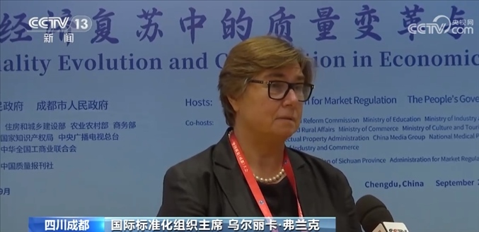 國際標準化組織主席 烏爾麗卡·弗蘭克:總體來說,中國在過去幾年的成就是非凡的,無論是在質量提升方面、制定質量標準方面,還是在國際貿(mào)易方面都是如此。