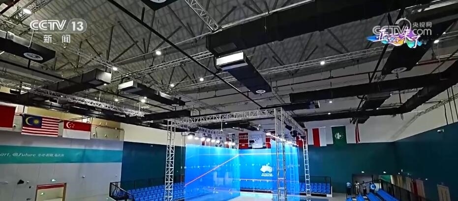 那么,這個建在會展場地里的亞運賽場是什么樣的?賽場內又有著哪些獨特的設計?接下來,我們就一起跟隨總臺央視記者的鏡頭去場館里看一看。