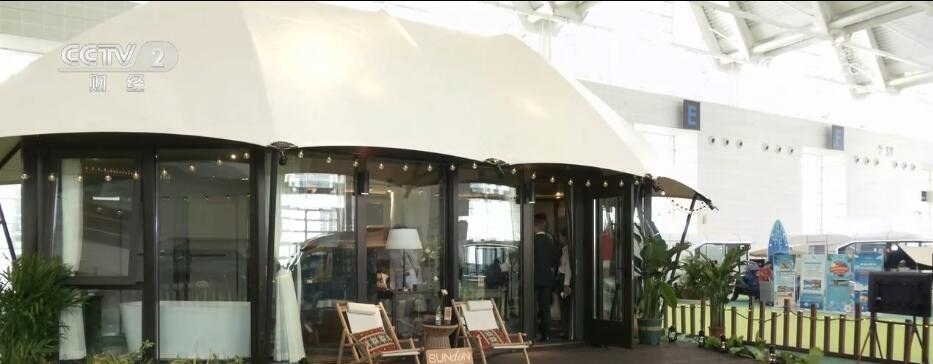 總臺央視記者 張嘉喬:我身后這座科技感十足、外觀極似太空艙的可移動民宿是今年博覽會上的一大亮點,由于它可以拆裝,又配備高科技的家居設備和人工智能助手,游客可以在這個38平方米的空間里實現(xiàn)住宿、商務接待、會客等娛樂活動。和傳統(tǒng)的民宿相比,它具有快速安裝、可重復使用、節(jié)約成本等優(yōu)勢。
