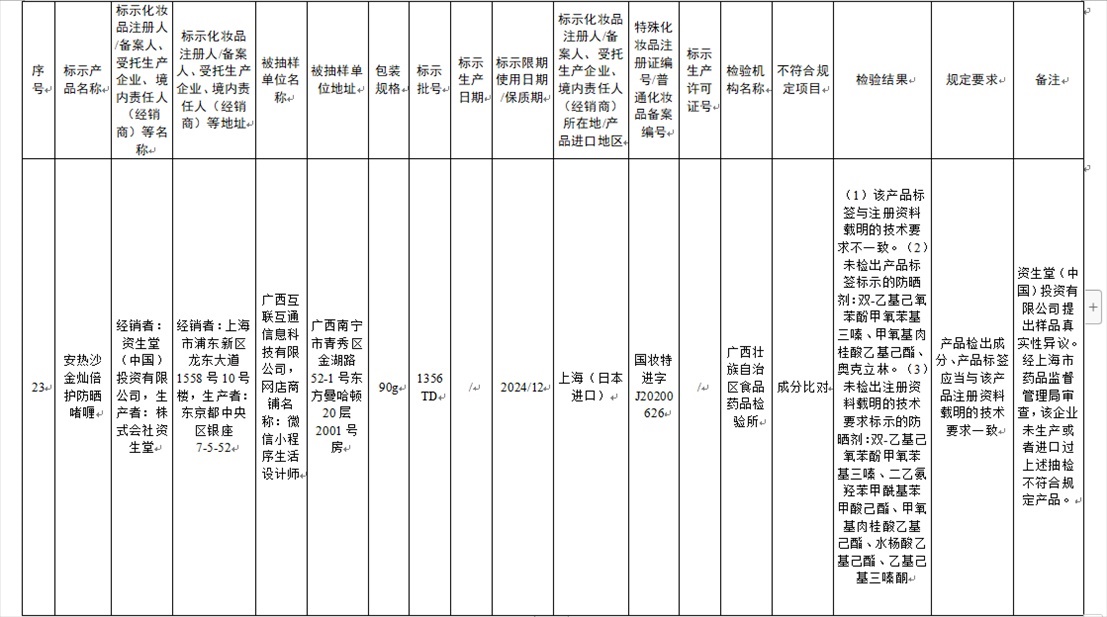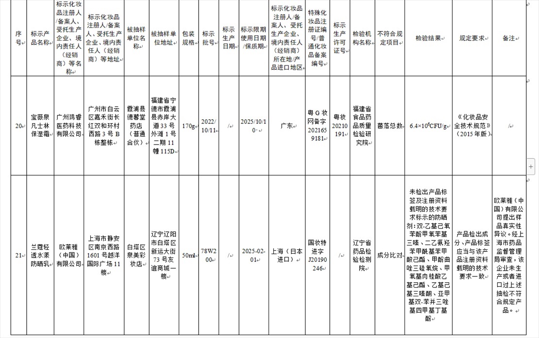 國(guó)家藥監(jiān)局網(wǎng)站今天發(fā)布通告稱,在2023年國(guó)家化妝品抽樣檢驗(yàn)工作中,經(jīng)重慶市食品藥品檢驗(yàn)檢測(cè)研究院等單位檢驗(yàn),產(chǎn)品標(biāo)簽標(biāo)示為廣州市天科化妝品有限公司生產(chǎn)的天科染發(fā)膏(自然黑)等23批次化妝品不符合規(guī)定(見下圖表格)。