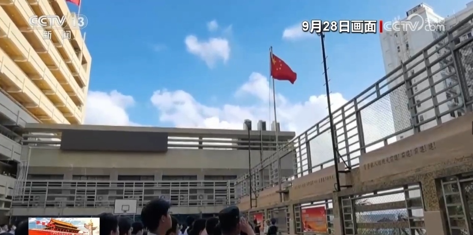 央視網(wǎng)消息:為慶祝中華人民共和國(guó)成立74周年,9月28日,香港培僑中學(xué)邀請(qǐng)解放軍駐香港部隊(duì)三軍儀仗隊(duì)來(lái)校為全體師生舉行升國(guó)旗儀式。培僑中學(xué)是新中國(guó)成立后首批升起五星紅旗的香港學(xué)校之一,從那時(shí)起,升國(guó)旗的儀式在培僑中學(xué)代代相傳,迄今已經(jīng)延續(xù)了74年。