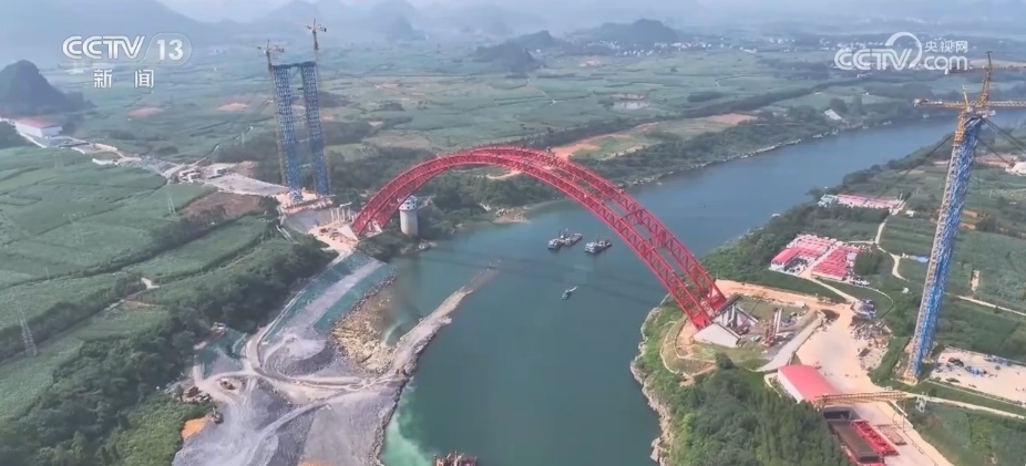 央視網消息:10月1日,廣西來賓西紅水河特大橋拱肋順利合龍,這標志著項目建設取得突破性進展,為下一步橋面鋪裝等工作打下堅實基礎。
