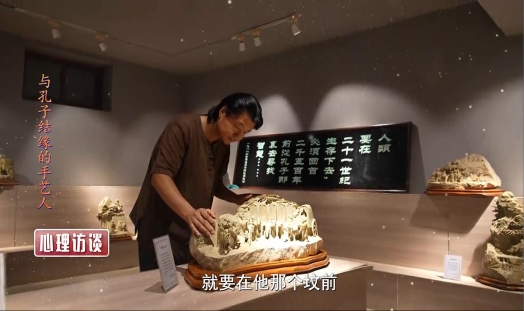 尼山是孔子的故鄉(xiāng),用尼山石雕刻孔子的一生,意義深遠(yuǎn)。杜慶收根據(jù)每塊尼山石的形狀、紋路,確定要雕刻的內(nèi)容。每塊尼山石重達(dá)一兩百斤,雕刻一個(gè)故事需要一兩個(gè)月左右。杜慶收常常在晨曦中開始雕刻,在月光中結(jié)束一天的工作。精雕細(xì)琢中,杜慶收也一遍遍揣摩孔子的內(nèi)心。曾經(jīng)意氣風(fēng)發(fā)的孔子,曾經(jīng)郁郁不得志的孔子,曾經(jīng)灑脫的孔子,曾經(jīng)被稱為“喪家之犬”的孔子,杜慶收每次都將自己代入其中。他最喜歡的是孔子與弟子走散,被人稱為“喪家之犬”的故事,這個(gè)故事也激勵(lì)著他,無論遇到什么樣的困難,都要堅(jiān)定地走下去,完成心中的夢想。為了完成這106件作品,杜慶收放下了其他的工作,全身心投入其中,并賣掉了自己唯一的房子,最終經(jīng)過九年的時(shí)間,終于完成了全部作品。