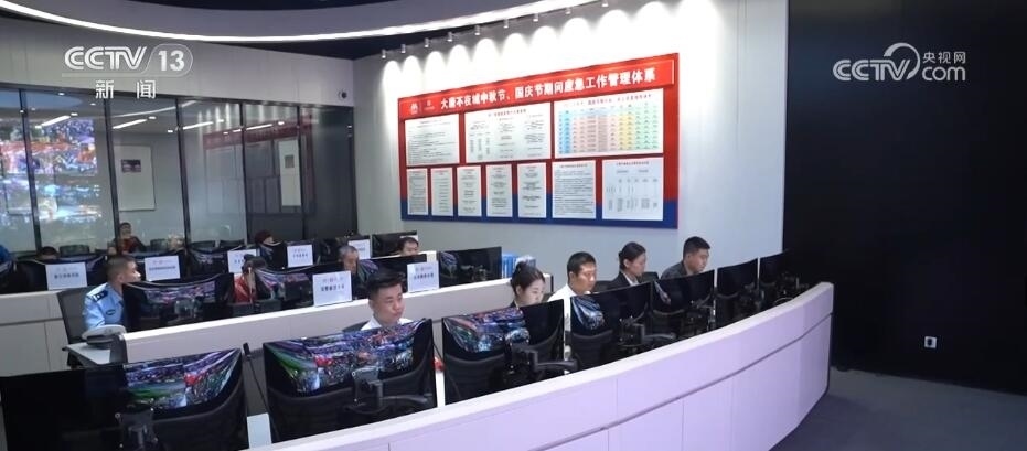 在大唐不夜城安保中心的指揮大廳里,記者看到,包括應(yīng)急、城管、公安、交通等十余個單位都派出人員在這里聯(lián)合辦公,方便隨時調(diào)度。安保指揮中心的大屏幕上,實(shí)時顯示著關(guān)鍵點(diǎn)位的具體情況等多種信息。
