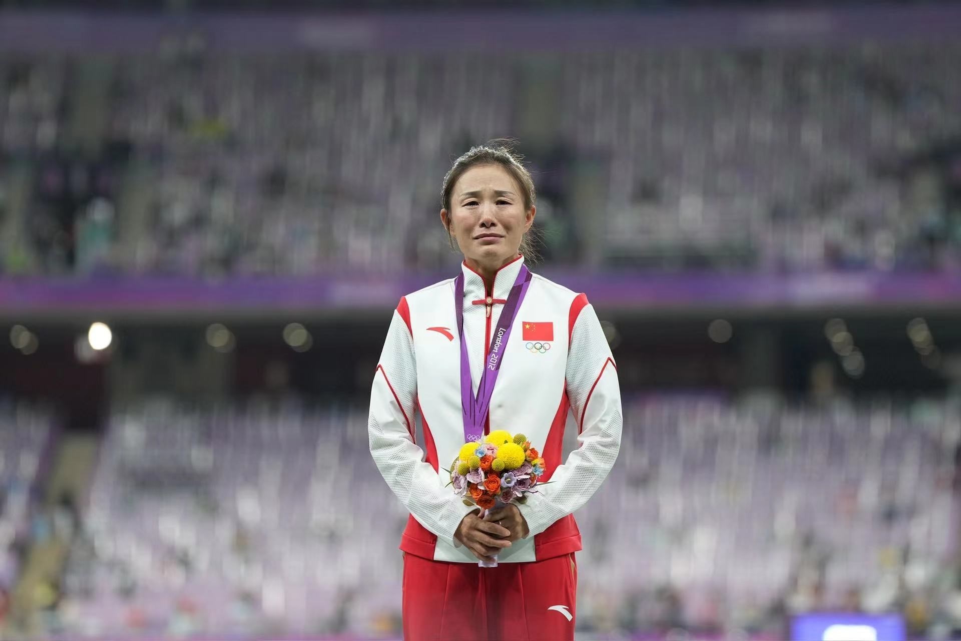 補(bǔ)發(fā)現(xiàn)場,首先頒發(fā)的是男子4×100米接力銅牌。四位中國小伙子笑著走上銅牌領(lǐng)獎臺,接受頒獎。隨后的競走頒獎儀式上,在三位得獎運(yùn)動員獲頒獎牌后,《義勇軍進(jìn)行曲》奏響,三面五星紅旗冉冉升起,切陽什姐眼中涌動著晶瑩的淚花。