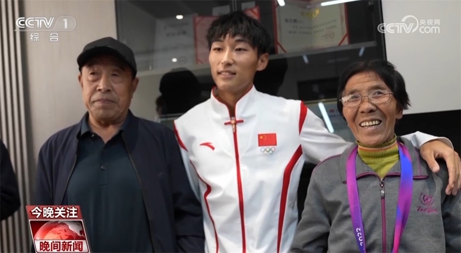 田徑比賽男子4×100米接力決賽中,第四棒陳佳鵬接棒時,中國隊稍微落后。憑借強(qiáng)大的后程加速能力,陳佳鵬在最后30米逆轉(zhuǎn)對手率先撞線,中國隊收獲金牌。奪冠后陳佳鵬回到老家,先后把金牌掛在了媽媽和奶奶的脖子上,合影時奶奶笑得合不攏嘴。