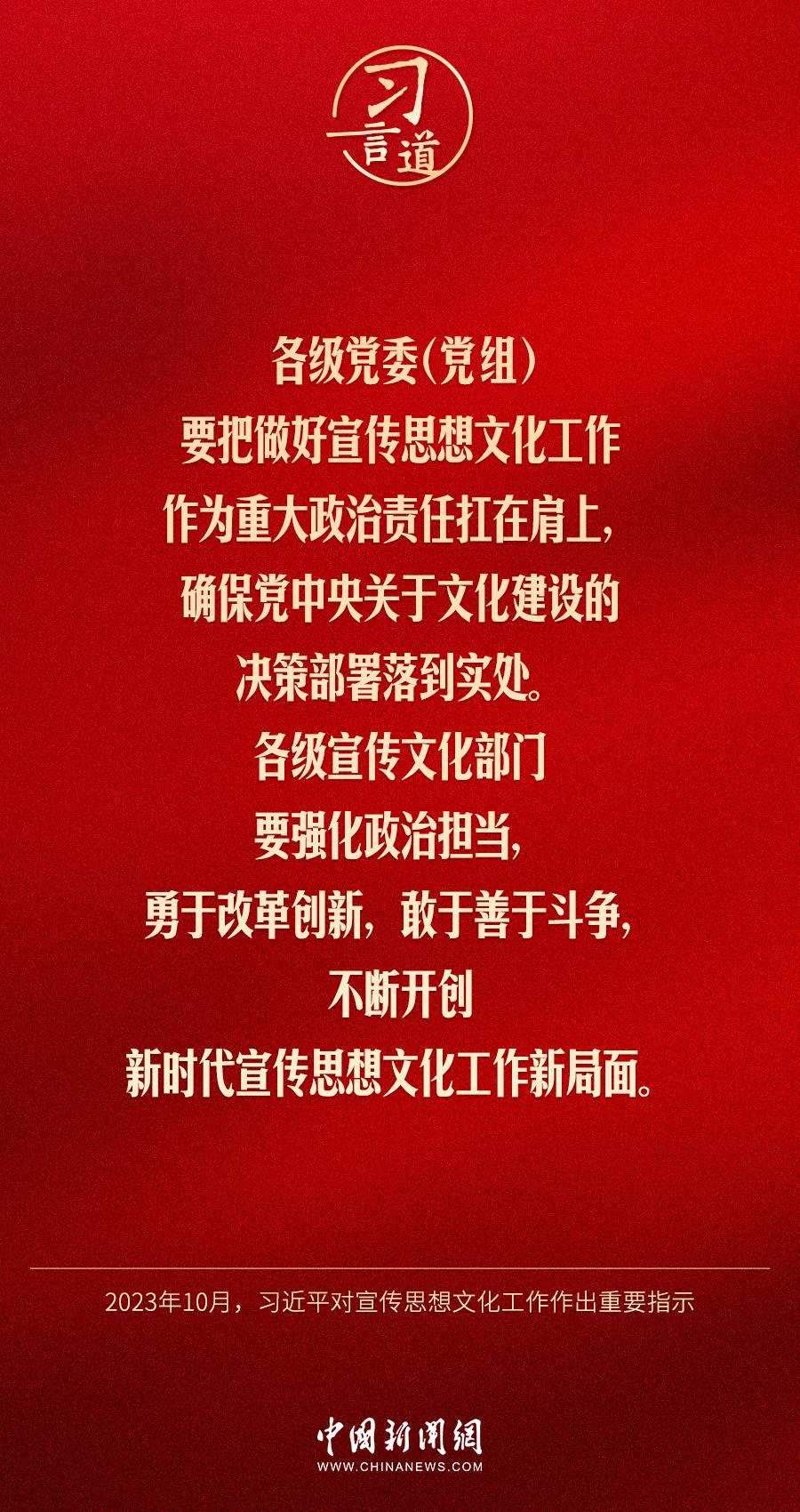 中共中央總書記、國家主席、中央軍委主席習(xí)近平近日對宣傳思想文化工作作出重要指示,他指出——