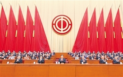 10月9日,中國(guó)工會(huì)第十八次全國(guó)代表大會(huì)在北京人民大會(huì)堂開(kāi)幕。習(xí)近平、趙樂(lè)際、王滬寧、蔡奇、丁薛祥、李希等在主席臺(tái)就座,祝賀大會(huì)召開(kāi)。新華社記者 申 宏攝