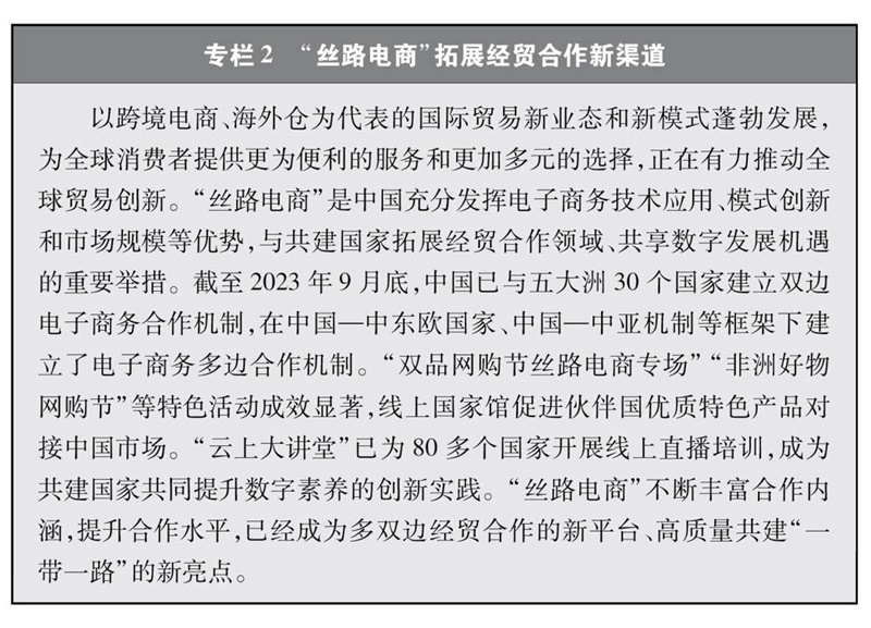 “數(shù)字絲綢之路”建設(shè)亮點(diǎn)紛呈。共建國(guó)家加強(qiáng)數(shù)字領(lǐng)域的規(guī)則標(biāo)準(zhǔn)聯(lián)通,推動(dòng)區(qū)域性數(shù)字政策協(xié)調(diào),攜手打造開放、公平、公正、非歧視的數(shù)字發(fā)展環(huán)境。截至2022年底,中國(guó)已與17個(gè)國(guó)家簽署“數(shù)字絲綢之路”合作諒解備忘錄,與30個(gè)國(guó)家簽署電子商務(wù)合作諒解備忘錄,與18個(gè)國(guó)家和地區(qū)簽署《關(guān)于加強(qiáng)數(shù)字經(jīng)濟(jì)領(lǐng)域投資合作的諒解備忘錄》,提出并推動(dòng)達(dá)成《全球數(shù)據(jù)安全倡議》《“一帶一路”數(shù)字經(jīng)濟(jì)國(guó)際合作倡議》《中國(guó)-東盟關(guān)于建立數(shù)字經(jīng)濟(jì)合作伙伴關(guān)系的倡議》《中阿數(shù)據(jù)安全合作倡議》《“中國(guó)+中亞五國(guó)”數(shù)據(jù)安全合作倡議》《金磚國(guó)家數(shù)字經(jīng)濟(jì)伙伴關(guān)系框架》等合作倡議,牽頭制定《跨境電商標(biāo)準(zhǔn)框架》。積極推進(jìn)數(shù)字基礎(chǔ)設(shè)施互聯(lián)互通,加快建設(shè)數(shù)字交通走廊,多條國(guó)際海底光纜建設(shè)取得積極進(jìn)展,構(gòu)建起130套跨境陸纜系統(tǒng),廣泛建設(shè)5G基站、數(shù)據(jù)中心、云計(jì)算中心、智慧城市等,對(duì)傳統(tǒng)基礎(chǔ)設(shè)施如港口、鐵路、道路、能源、水利等進(jìn)行數(shù)字化升級(jí)改造,“中國(guó)-東盟信息港”、“數(shù)字化中歐班列”、中阿網(wǎng)上絲綢之路等重點(diǎn)項(xiàng)目全面推進(jìn),“數(shù)字絲路地球大數(shù)據(jù)平臺(tái)”實(shí)現(xiàn)多語(yǔ)言數(shù)據(jù)共享??臻g信息走廊建設(shè)成效顯著,中國(guó)已建成連接南亞、非洲、歐洲和美洲的衛(wèi)星電信港,中巴(西)地球資源系列遙感衛(wèi)星數(shù)據(jù)廣泛應(yīng)用于多個(gè)國(guó)家和領(lǐng)域,北斗三號(hào)全球衛(wèi)星導(dǎo)航系統(tǒng)為中歐班列、船舶海運(yùn)等領(lǐng)域提供全面服務(wù);中國(guó)與多個(gè)共建國(guó)家和地區(qū)共同研制和發(fā)射通信或遙感衛(wèi)星、建設(shè)衛(wèi)星地面接收站等空間基礎(chǔ)設(shè)施,依托聯(lián)合國(guó)空間科技教育亞太區(qū)域中心(中國(guó))為共建國(guó)家培養(yǎng)大量航天人才,積極共建中海聯(lián)合月球和深空探測(cè)中心、中阿空間碎片聯(lián)合觀測(cè)中心、瀾湄對(duì)地觀測(cè)數(shù)據(jù)合作中心、中國(guó)東盟衛(wèi)星應(yīng)用信息中心、中非衛(wèi)星遙感應(yīng)用合作中心,利用高分衛(wèi)星16米數(shù)據(jù)共享服務(wù)平臺(tái)、“一帶一路”典型氣象災(zāi)害分析及預(yù)警平臺(tái)、自然資源衛(wèi)星遙感云服務(wù)平臺(tái)等服務(wù)于更多共建國(guó)家。