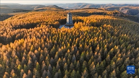 河北承德,塞罕壩國(guó)家森林公園秋景。