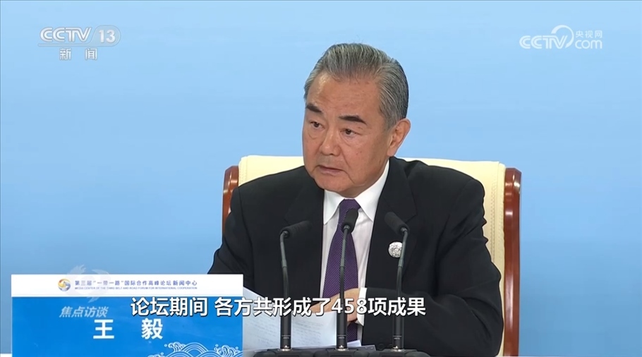 央視網(wǎng)消息(焦點(diǎn)訪談):10月18日,第三屆“一帶一路”國(guó)際合作高峰論壇在北京舉行。十年櫛風(fēng)沐雨,十年春華秋實(shí)。中國(guó)同各國(guó)堅(jiān)守初心、攜手同行,推動(dòng)“一帶一路”國(guó)際合作從無到有,蓬勃發(fā)展,取得豐碩成果。本次高峰論壇是共建“一帶一路”進(jìn)程中又一個(gè)重要里程碑。10月18日當(dāng)晚,在高峰論壇結(jié)束之際,中共中央政治局委員、外交部長(zhǎng)王毅舉行中外記者會(huì),介紹高峰論壇重要成果。
