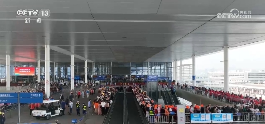 每天早上8時(shí)是口岸大廳人流最多的時(shí)候,往來(lái)珠海、澳門(mén)、香港三地的旅行團(tuán)都匯聚在這里拍照“打卡”,然后再各自出發(fā)前往目的地。