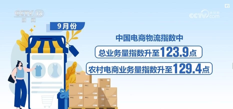 數(shù)據(jù)顯示,今年前三季度,線上電商物流保持旺盛活力,特別是進(jìn)入9月份,農(nóng)村以及全領(lǐng)域電商物流需求穩(wěn)步回升。9月份,中國(guó)電商物流指數(shù)中的總業(yè)務(wù)量指數(shù)、農(nóng)村電商業(yè)務(wù)量指數(shù)分別升至123.9點(diǎn)、129.4點(diǎn)的年內(nèi)較高水平。