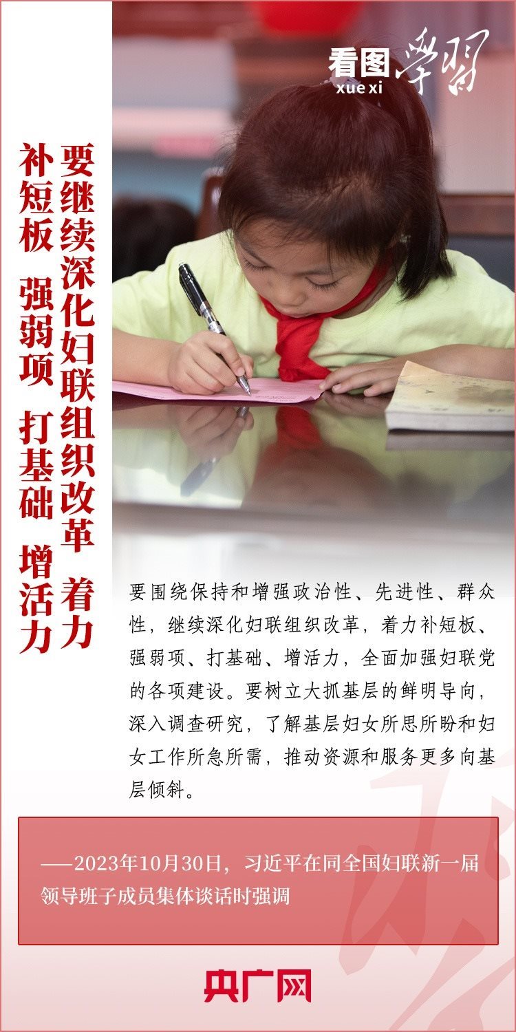 10月30日下午,習(xí)近平總書記同全國婦聯(lián)新一屆領(lǐng)導(dǎo)班子成員集體談話并發(fā)表重要講話??倳洀?qiáng)調(diào),要堅定不移走中國特色社會主義婦女發(fā)展道路,激勵廣大婦女自尊自信、自立自強(qiáng),奮進(jìn)新征程、建功新時代,為中國式現(xiàn)代化建設(shè)貢獻(xiàn)巾幗智慧和力量。一起來學(xué)習(xí)!
