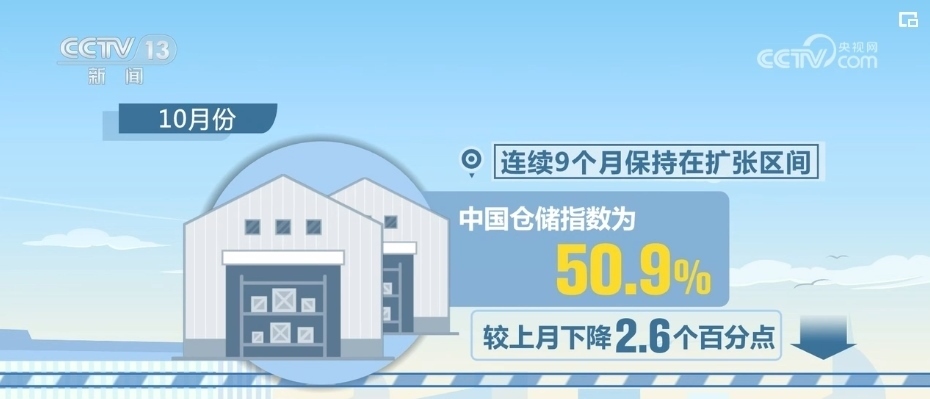 10月份,中國倉儲指數(shù)為50.9%,較上月下降2.6個百分點,連續(xù)9個月保持在擴張區(qū)間。