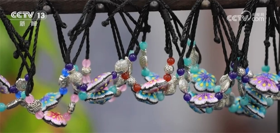 讓石順蓮她們沒想到的是,過去從未在傳統(tǒng)苗繡中出現(xiàn)過的胸針、發(fā)釵、耳墜等都能融入苗繡元素,如今這些生活飾品、文創(chuàng)產品已成為游客們的香餑餑。