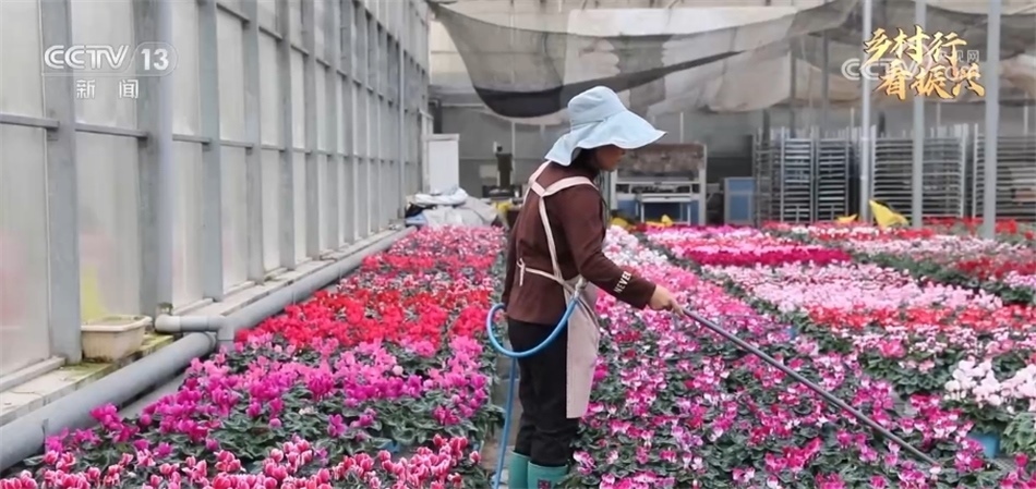 總臺記者 陶澤文:在新型花卉溫室大棚內(nèi),自動化系統(tǒng)可以適時地調(diào)整光照、濕度、溫度,打造出適合植物生長的環(huán)境。在自動噴淋系統(tǒng)的配合下,一個標準化的大棚只需要3—4名農(nóng)戶就可以完成植物的育種、栽植、養(yǎng)護的全生產(chǎn)流程。