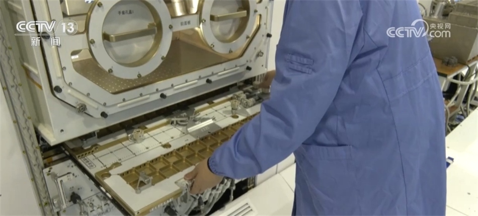 總臺(tái)央視記者 褚爾嘉:這里是中國(guó)科學(xué)院空間應(yīng)用工程與技術(shù)中心的鏡像大廳,在這里一共有十四臺(tái)像我身后這樣的實(shí)驗(yàn)柜。這些實(shí)驗(yàn)柜實(shí)際上跟在中國(guó)空間站中的實(shí)驗(yàn)柜是一模一樣的。在我身后這里有一個(gè)叫在線維修裝調(diào)操作柜,在中國(guó)空間站的夢(mèng)天實(shí)驗(yàn)艙里就有一個(gè)完全一樣的操作柜,它可以實(shí)現(xiàn)在軌對(duì)出現(xiàn)故障的一些設(shè)備進(jìn)行維修。