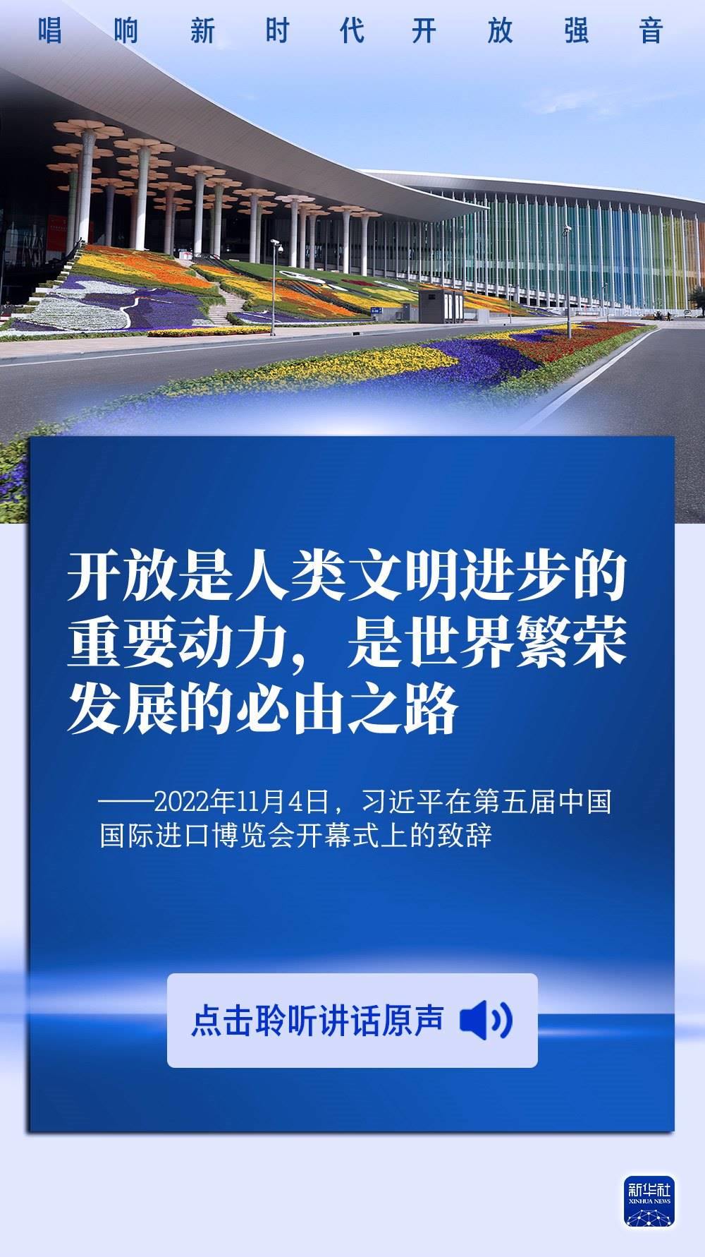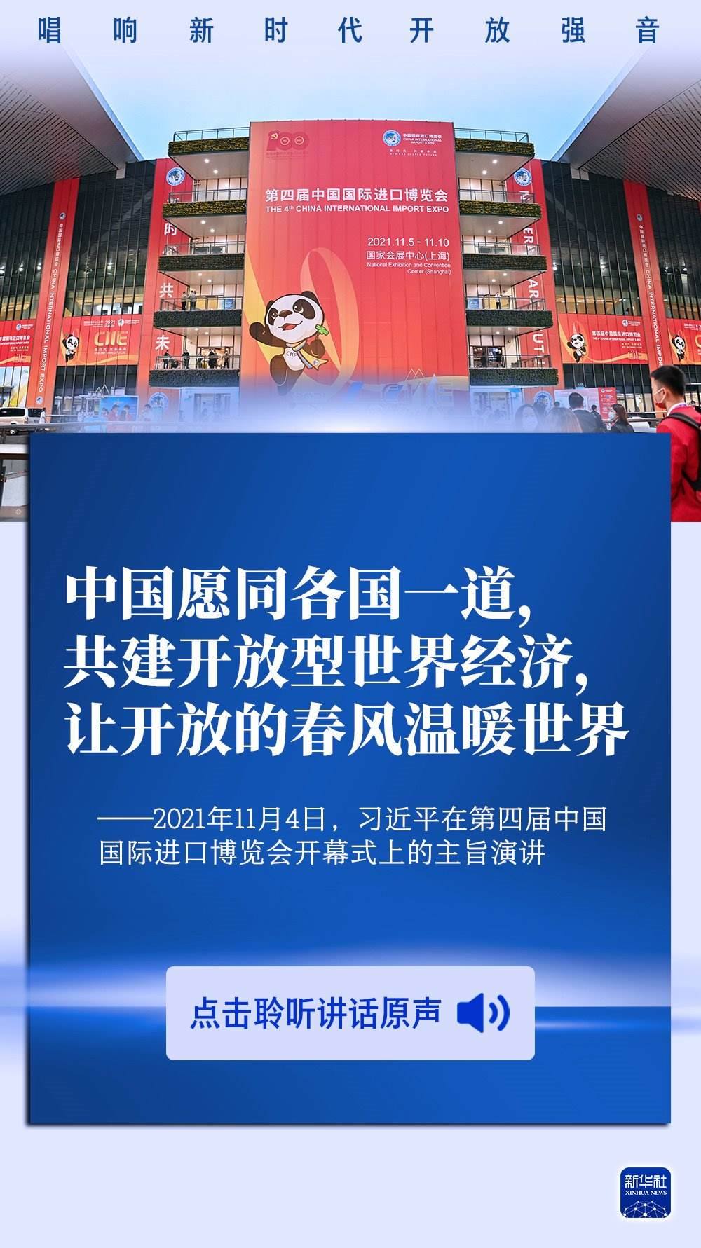 開放是當(dāng)代中國(guó)的鮮明標(biāo)識(shí)。習(xí)近平主席說,舉辦中國(guó)國(guó)際進(jìn)口博覽會(huì),是中國(guó)著眼于推動(dòng)新一輪高水平對(duì)外開放作出的重大決策,是中國(guó)主動(dòng)向世界開放市場(chǎng)的重大舉措。習(xí)主席在歷屆進(jìn)博會(huì)上的重要講話,發(fā)出開放合作的時(shí)代強(qiáng)音,為建設(shè)開放型世界經(jīng)濟(jì)注入正能量。